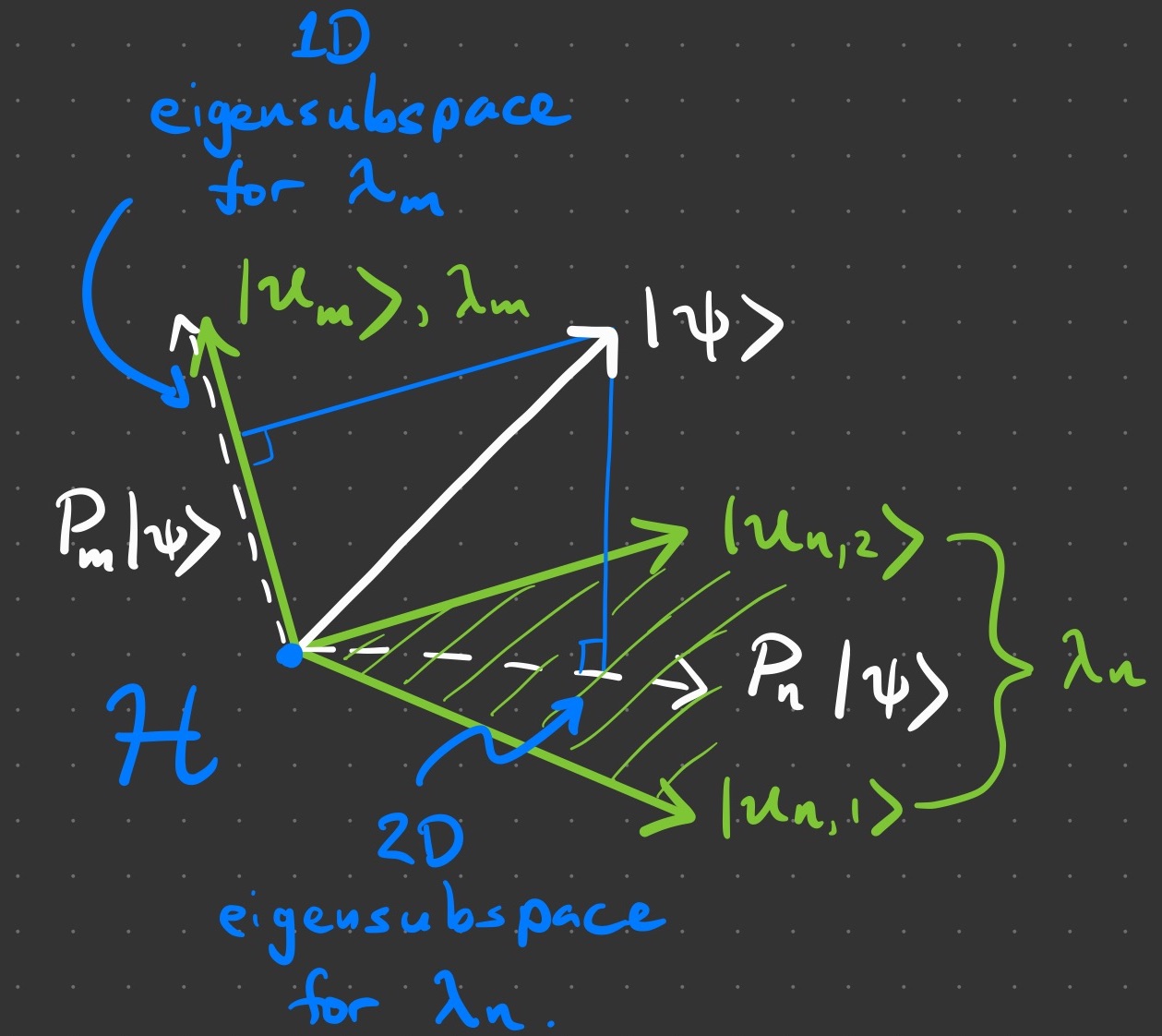 We bothered ourselves with the projection operator because, in general, an eigenvalue will correspond to subspace spanned by two or more eigenvectors, such that