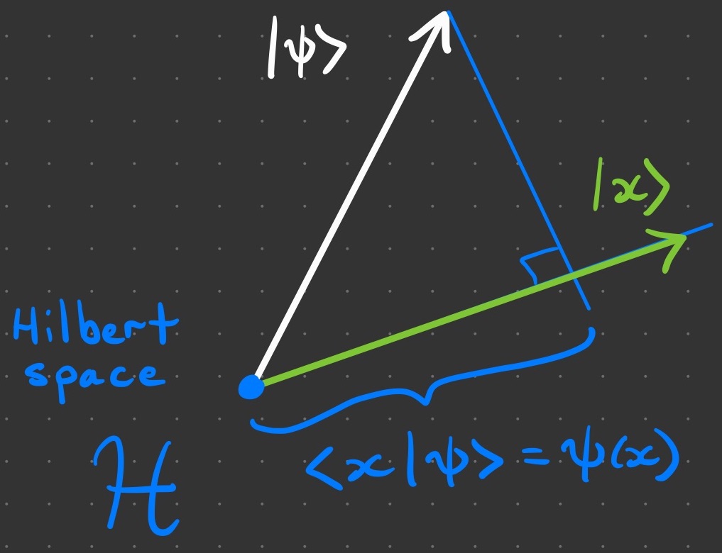 Before getting into this, we need to associate the wavefunction with a vector, which we denote by putting funny brackets around the function